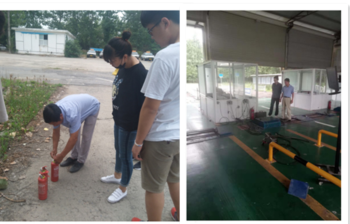 鑫誠駕校指導(dǎo)學(xué)員使用滅火器材 檢查上窯檢測線和環(huán)檢線車間
