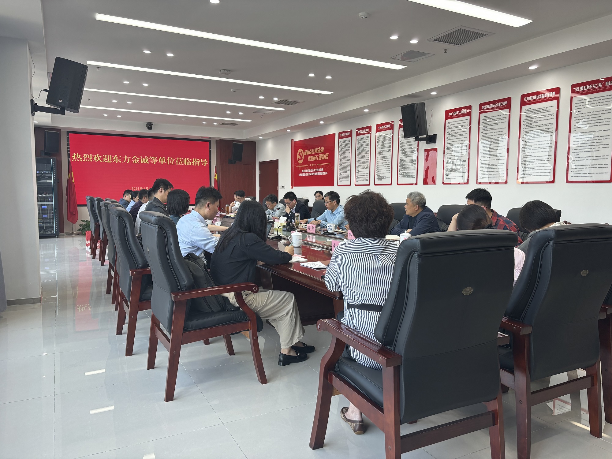 2024年5月10日下午,東方金誠評級(jí)公司安徽分公司總經(jīng)理黃天祺、北京興昌華會(huì)計(jì)師事務(wù)所首席合伙人汪和俊、和汛資產(chǎn)評估公司總經(jīng)理王林、國金證券債券二部董事總經(jīng)理李磊一行到訪建發(fā)集團(tuán),就淮南平臺(tái)公司信用評級(jí)提升及市場化融資事宜進(jìn)行座談交流,市財(cái)政局(國資委)黨委書記、局長唐兵主持接待,
