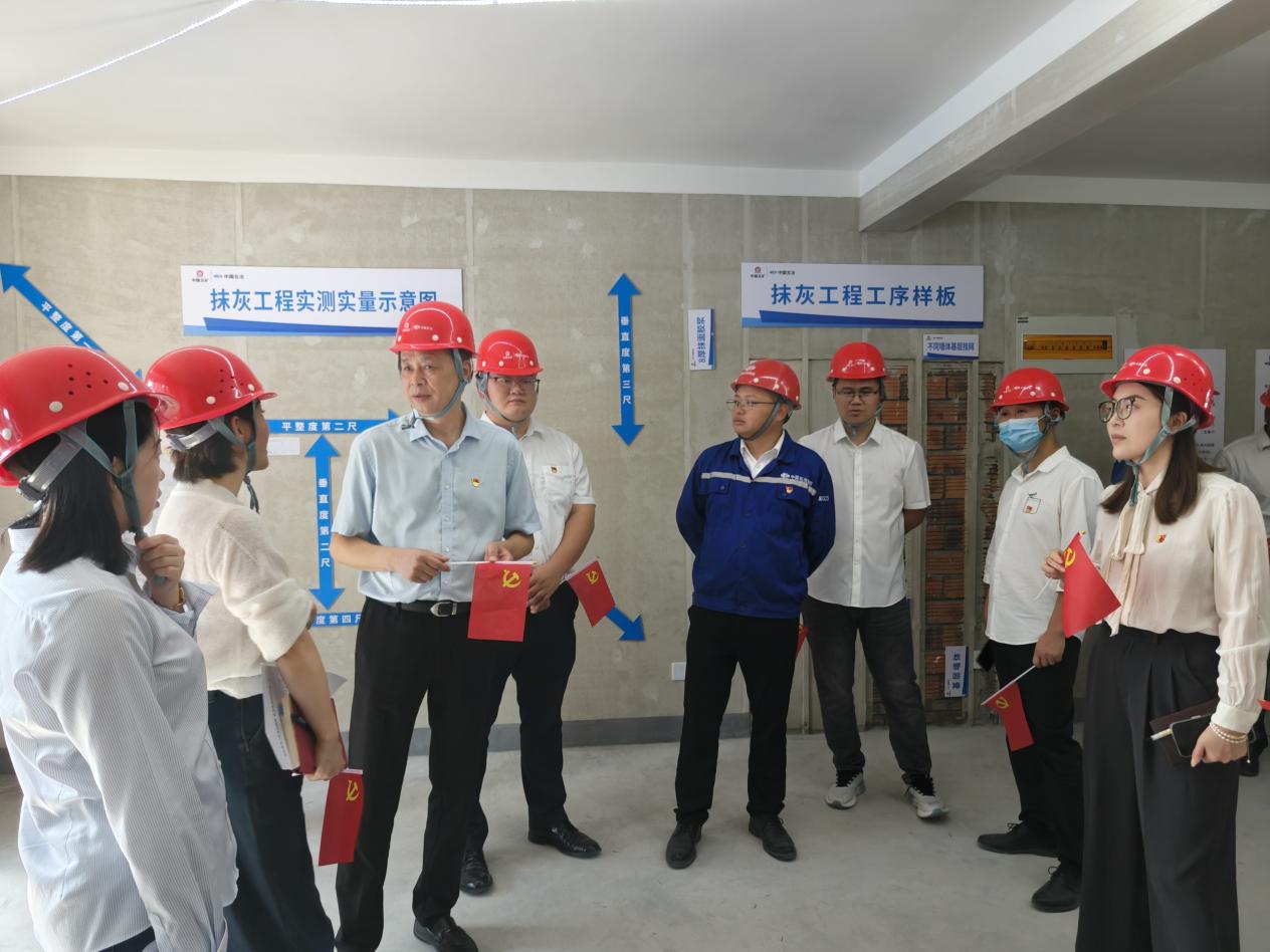 活動中,黨員們依次參觀了項目工程工藝樣板展示區(qū)和實體樣板房,在諸如安裝樣板、鋁模安裝樣板、主體結(jié)構(gòu)樣板、墻體砌筑抹灰樣板、梁柱節(jié)點樣板等展區(qū),黨員們身臨其境,直觀感受集團(tuán)公司和五冶項目部嚴(yán)格控制工藝質(zhì)量、流程及規(guī)范化管理,傾力打造優(yōu)質(zhì)房建項目的態(tài)度和決心。