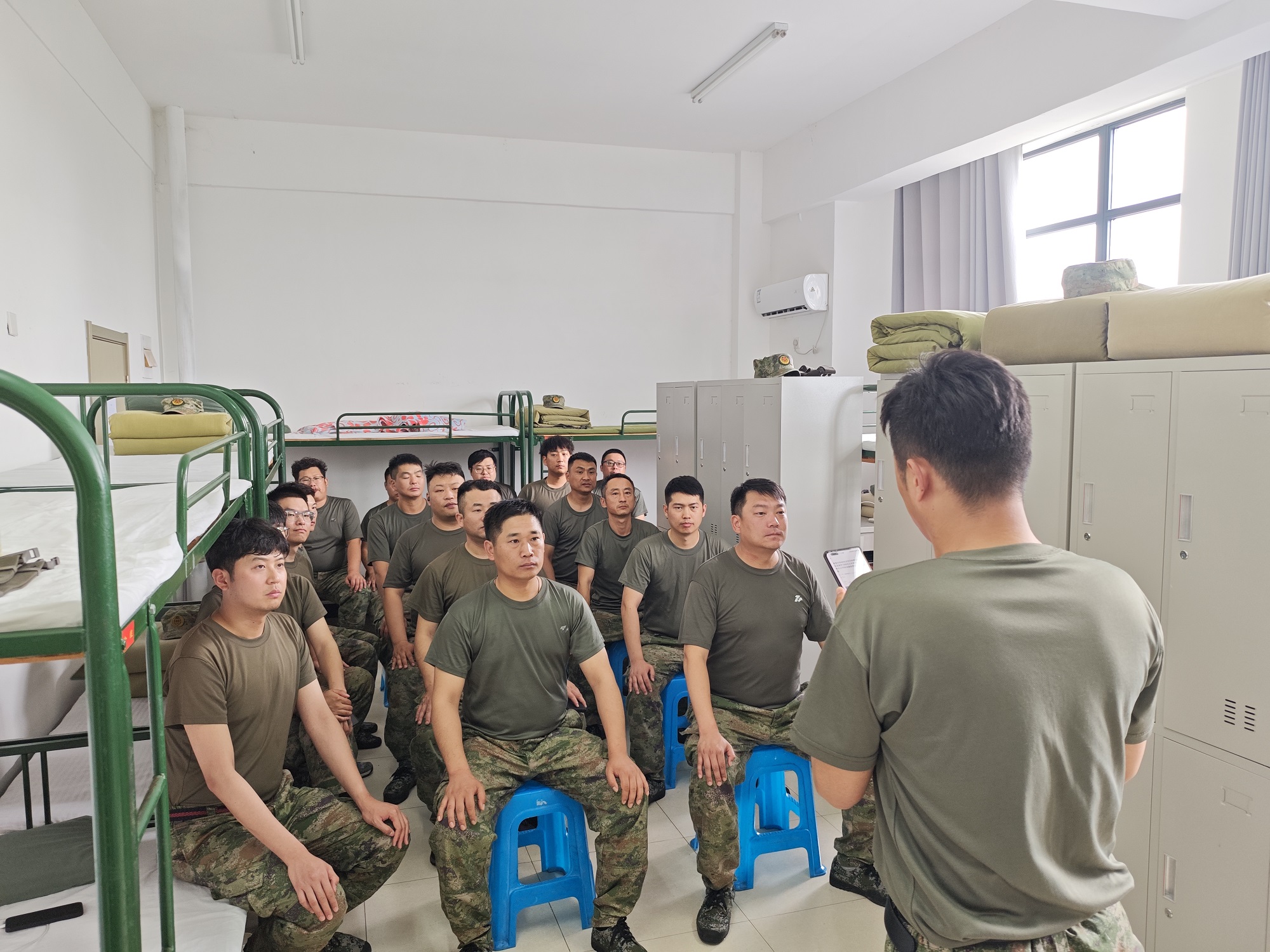 訓(xùn)練場上,職工們頂著炎炎烈日,認(rèn)真進(jìn)行軍姿、隊(duì)列等軍事技術(shù)訓(xùn)練,任汗水浸濕訓(xùn)練服,依然不怕苦累、一絲不茍;在課堂上,職工們專注聽講、認(rèn)真記錄,深入領(lǐng)會(huì)學(xué)習(xí)習(xí)近平強(qiáng)軍思想和軍事理論、戰(zhàn)備常識(shí)等知識(shí);在宿舍里,職工們互幫互助、細(xì)致整理內(nèi)務(wù)。退伍老兵們主動(dòng)發(fā)揮傳幫帶的優(yōu)良傳統(tǒng),主動(dòng)指導(dǎo)同宿舍人員把被子疊成“豆腐塊”,把地面清掃得光潔如鏡。職工們以優(yōu)良的訓(xùn)練作風(fēng)和堅(jiān)韌的意志品質(zhì)贏得了基地教官們的一致好評(píng),在訓(xùn)練基地留下了蓬勃向上的建發(fā)風(fēng)采。
